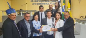 O Vereador Antônio Tavares, nesta terça feira (21 de junho), entregou mais uma Moção de Aplausos de sua autoria, sendo dessa vez, para o Vice – Prefeito Municipal Marcos UNILAR, que se fez presente na companhia de sua Mãe Professora Cidália, irmãos e amigos, para receber a importante honraria. Marcos UNILAR, ao receber das mãos do Vereador Antônio Tavares, a Moção de Aplausos, agradeceu ao Vereador Antônio Tavares, pela indicação, bem como aos seus pares pelo reconhecimento do seu trabalho que tem feito em nosso município, para que Barra do Corda-MA ocupe o cenário em destaque ao desenvolvimento social e político de nosso estado. Lembrando que a sua grande conquista, é poder estar colaborando com a UNIVIMAR – União dos Vice – Prefeitos e Vice-prefeitas do Estado do Maranhão, presidida pelo Vice-Prefeito de São João Batista, Mário Carvalho, que no dia 23 de abril, ele teve a sábia decisão de promover o primeiro encontro da UNIVIMAR em nosso Município, onde a nossa cidade se destacou em ter recepcionado os integrantes da UNIVIMAR e autoridades do governo do estado, que também representou na ocasião do evento, o governador Carlos Brandão, no IFMA/BC -MA, onde foi promovido o encontro da UNIVIMAR, que naquele momento elevou o nosso Município à categoria do Primeiro Município a reconhecer a importância da UNIVIMAR ao Maranhão – Brasil, como entidade que visa o desenvolvimento da municipalidade em nosso estado, ao buscar também a união de todos para o bem comum da população maranhense e em especial a barracordense. Marcos UNILAR Ressaltou ainda, a sua alegria em saber que o Prefeito Rigo Teles, se fez presente no citado evento, como primeiro gestor municipal a reconhecer a entidade associativa, assim como a Câmara Municipal de Barra do Corda-MA, que também é a primeira do Maranhão, pois com a Moção de Aplausos que recebeu daquela Casa, só confirmou o respeito à sua pessoa e à UNIVIMAR, a qual ele faz parte como sócio fundador. Abraçou a todos os presentes e ao mesmo tempo, reiterou o seu compromisso com a nossa querida Barra do Corda-MA, assim como o seu respeito e admiração por todos os Vereadores de Barra do Corda-MA. O Vereador Antônio Tavares, por sua vez ao se pronunciar na tribuna daquele poder legislativo, falou sobre a sua grande alegria em poder homenagear o Marcos UNILAR naquele momento, pois é conhecedor de sua trajetória profissional como empresário e político em nosso município, pois Barra do Corda tem muito a se orgulha em ter o Marcos UNILAR como seu filho, considerando que o mesmo, tem sido um grande incentivador ao desenvolvimento de nossa Cidade, com a oferta de empregos e renda, bem como o seu desejo em poder alcançar melhores condições de vida à população barracordense. Antes de encerrar as suas palavras, Antônio Tavares reiterou sua grande satisfação em hoje está homenageando juntamente com os seus pares um homem que tem lutado para que o nosso município cresça em todos aspectos sociais e econômicos, pois só quem tem a ganhar, são os nossos irmãos barracordenses, que buscam o sustento de suas famílias, nas labutas do dia a dia, por isso, o Marcos UNILAR tem em seu conceito, respeito, consideração e sua admiração, tal como dos seus pares. Disse o Vereador Antônio Tavares.