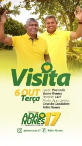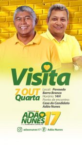 Agenda desta quarta-feira dos candidatos a prefeito em Barra do Corda 7 de Outubro, 2020 Francisco Carvalho Barra do Corda